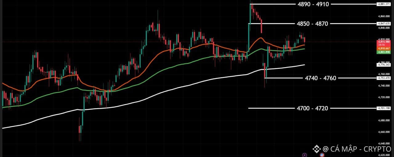 🔽 Vùng kháng cự: 4850 - 4870, 4890 - 4910
