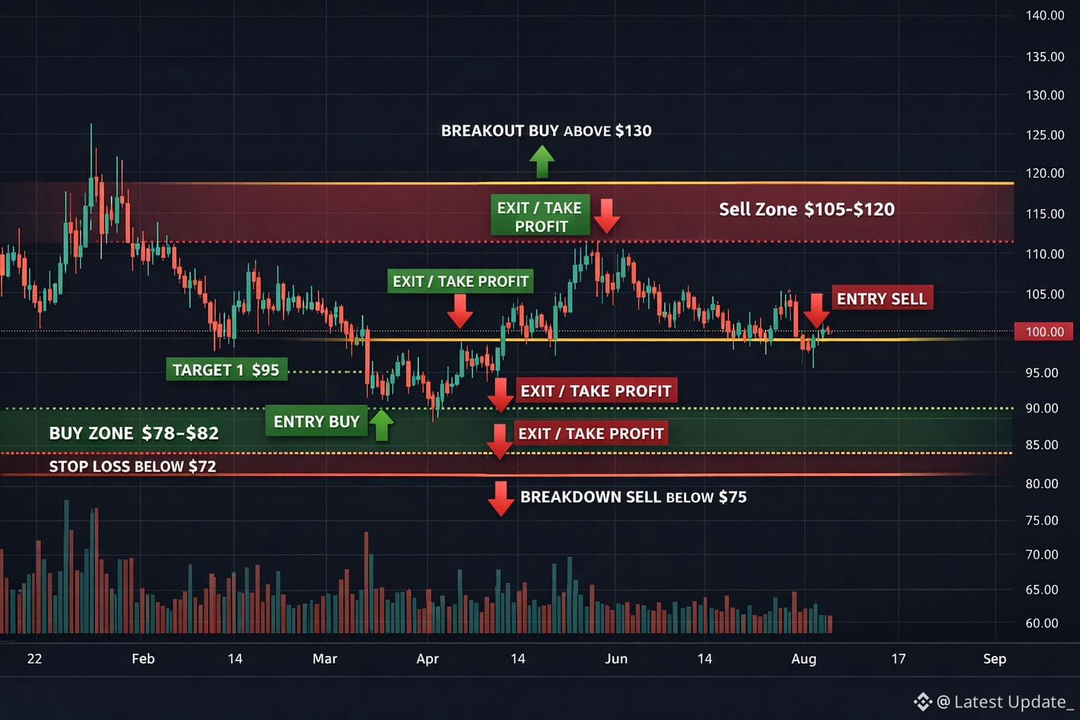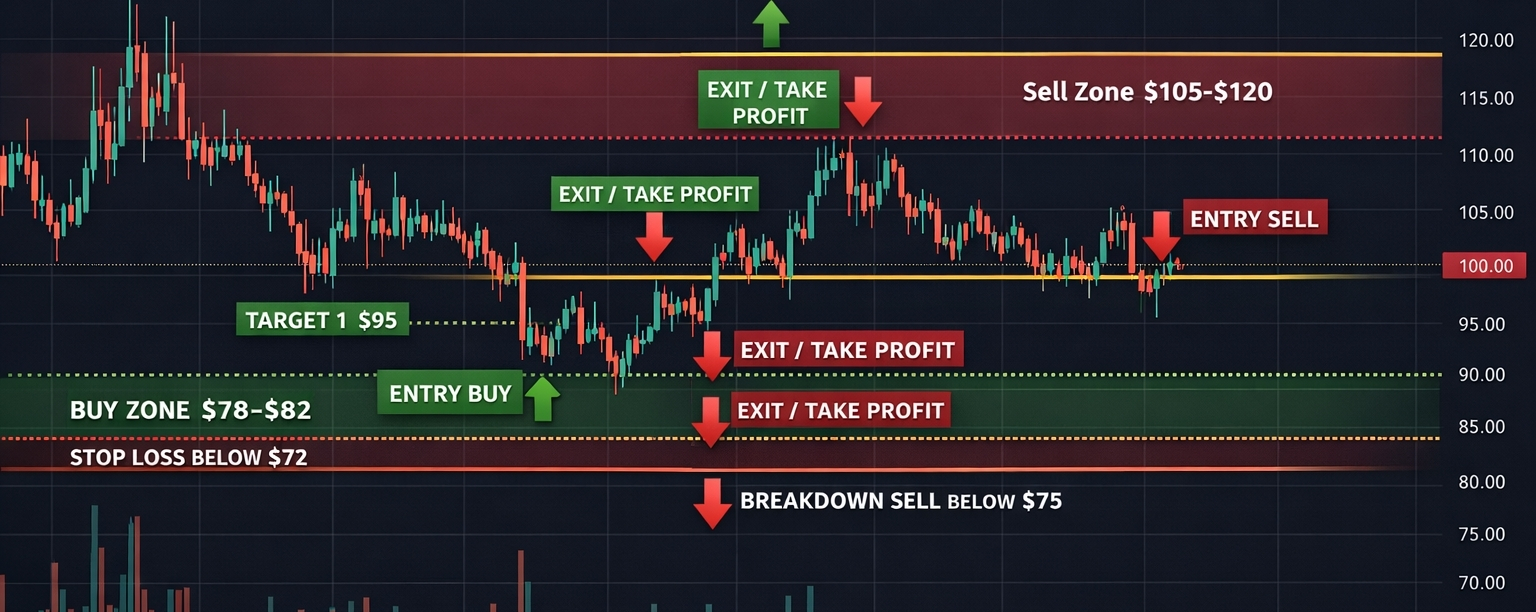 Avoid trading in the $85–$100 zone (noise area)