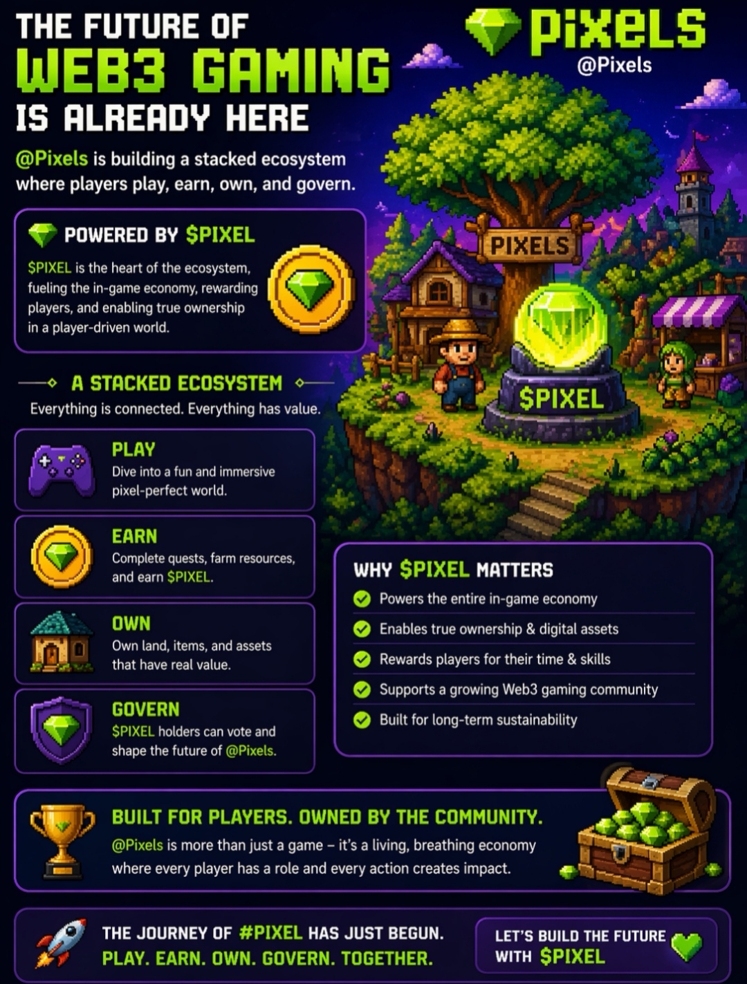 As Web3 continues to evolve, projects like @Pixels are leading the way by combining fun gameplay with real economic opportunities. $PIXEL isn’t just a token—it’s the backbone of a growing digital universe. The journey of #pixel is just getting started, and its potential looks stronger than ever 🚀