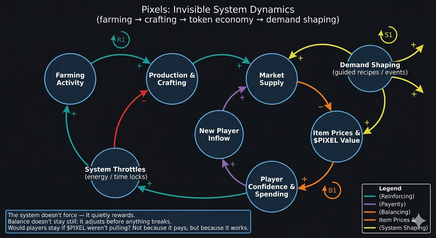 From the outside, Pixels feels balanced. Nothing feels completely off, nothing feels out of control.