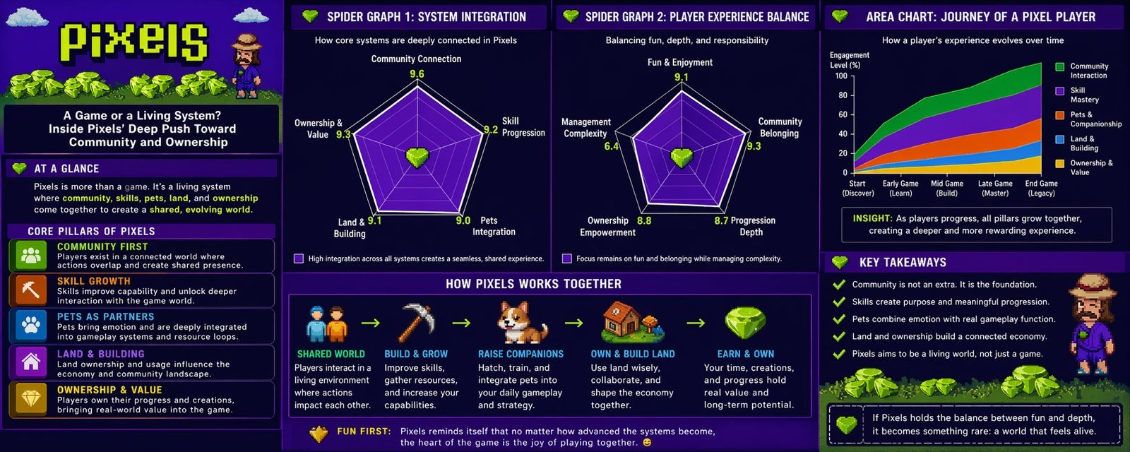 For me, this is where Pixels stands out. It is not just trying to build a game where players earn something. It is trying to build a world where players feel like they belong. Skills, pets, land, and communities are all woven together in a way that makes progress feel shared and continuous.
