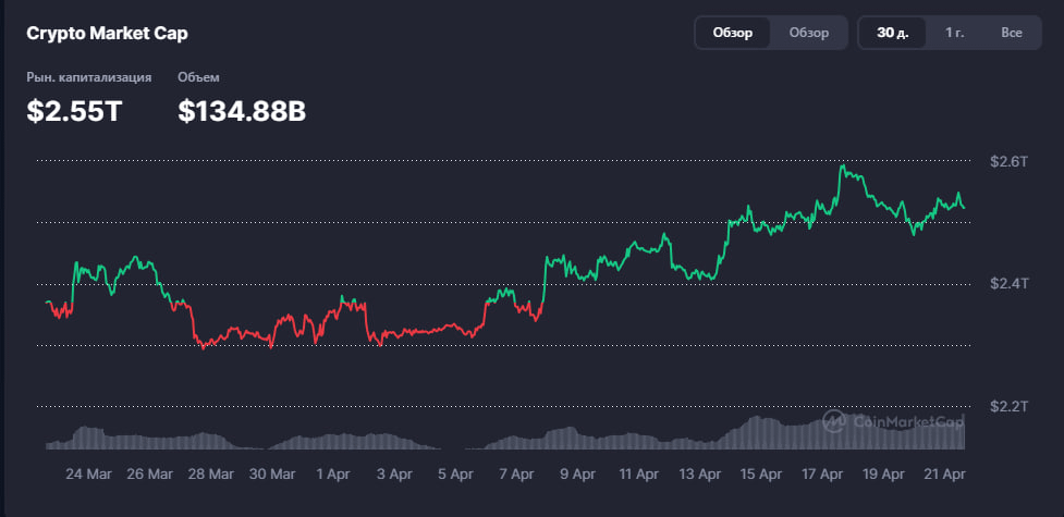 Самый сильный триггер последних суток — Strategy. Компания 20 апреля сообщила, что купила 34,164 BTC и довела общий баланс до 815,061 BTC. По рыночным публикациям, это покупка примерно на $2.54 млрд, крупнейшая с конца 2024 года. Это важный сигнал: крупный корпоративный капитал не выходит на росте, а продолжает агрессивно добирать.