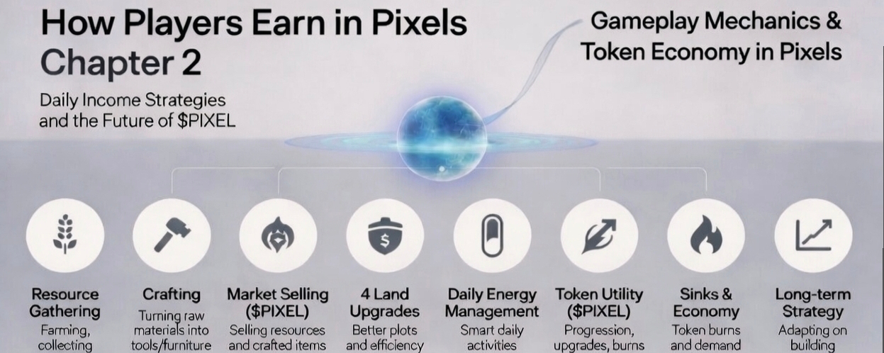Overall making consistent income in Pixels Chapter 2 comes down to blending daily efficiency with good market sense and smart positioning over time. #pixel role in progression and utility is key to keeping the system healthy. If the balance holds real demand, useful sinks and actual gameplay value this could be a more sustainable take on play to earn than what we saw before. Its not easy money, but for players who treat it seriously its got real potential.