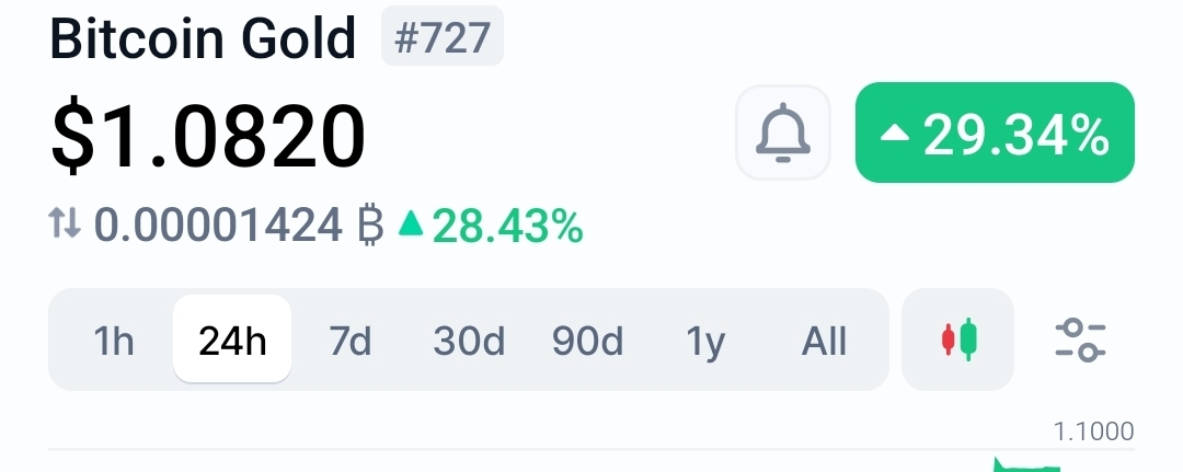 We resolved two BTG coins; likely user means Bitcoin Gold, the older known one. Need live price, 24h change, maybe quick overview. Use market-data-info for coin id 2083.Bitcoin Gold (BTG) is currently trading around $1.08, with a 24‑hour change of +29.33% and a 7‑day change of −51.20%. Its market cap is about $18.95 M with 24‑hour volume near $1,267.71, and historically its recorded all‑time high is $539.72 and all‑time low is $0.092072, so the current price sits very close to the low end of its long‑term range.