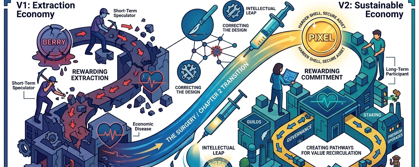 This is why the BERRY-to-PIXEL transition should be understood with auditor logic, not marketing language. The question is not whether the new token looks more premium or sounds more official. The question is whether the system now does a better job containing extraction, rewarding commitment, and creating pathways where value recirculates instead of evaporates. Does the economy encourage staying, building, upgrading, coordinating, and spending with intention? Or does it still quietly reward users for treating the game like a temporary mine?