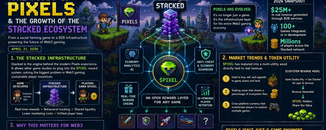 It is fascinating to watch how the decentralized gaming world is changing right before our eyes. As of April 21, 2026, the project known as Pixels has moved far beyond its early days as a simple social farming game. It has evolved into a serious business-to-business infrastructure provider. This massive shift is centered around the Stacked ecosystem, a framework built to fix the common problems of reward distribution and keeping players engaged in the Web3 space. By expanding past its original roots on the Ronin Network, Pixels is showing everyone how a single game can become a universal utility for the entire digital economy.