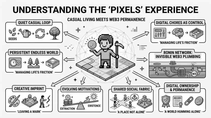 Logging in feels a bit like stepping into a very old, very familiar room. The screen is filled with blocky colors. Just @Pixels . It’s funny how we still use that word to describe an aesthetic, as if everything on a screen isn't just pixels anyway. But here, they are big and unapologetic. The edges are sharp. You plant a seed. You water it. You walk away. It’s a very quiet loop.