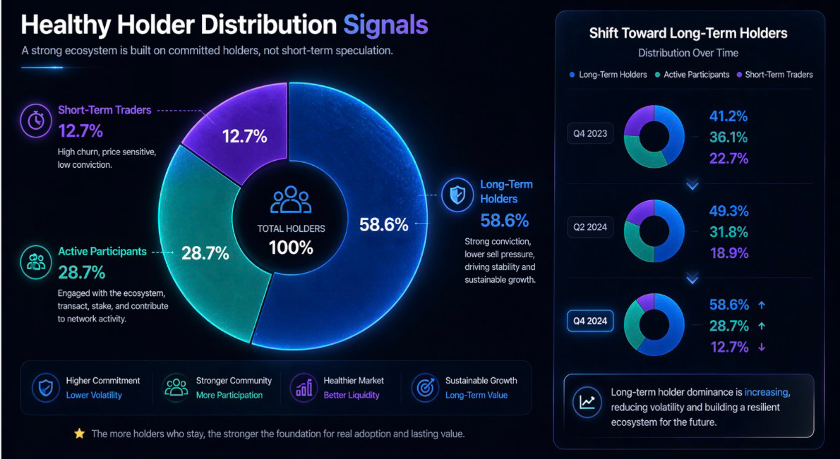 You start to see smoother liquidity curves instead of violent spikes. Holder distribution becomes less top-heavy. The ratio of active users to passive holders improves. These are not just cosmetic metrics. They’re signals of whether a network is developing real economic gravity or just cycling speculative interest.