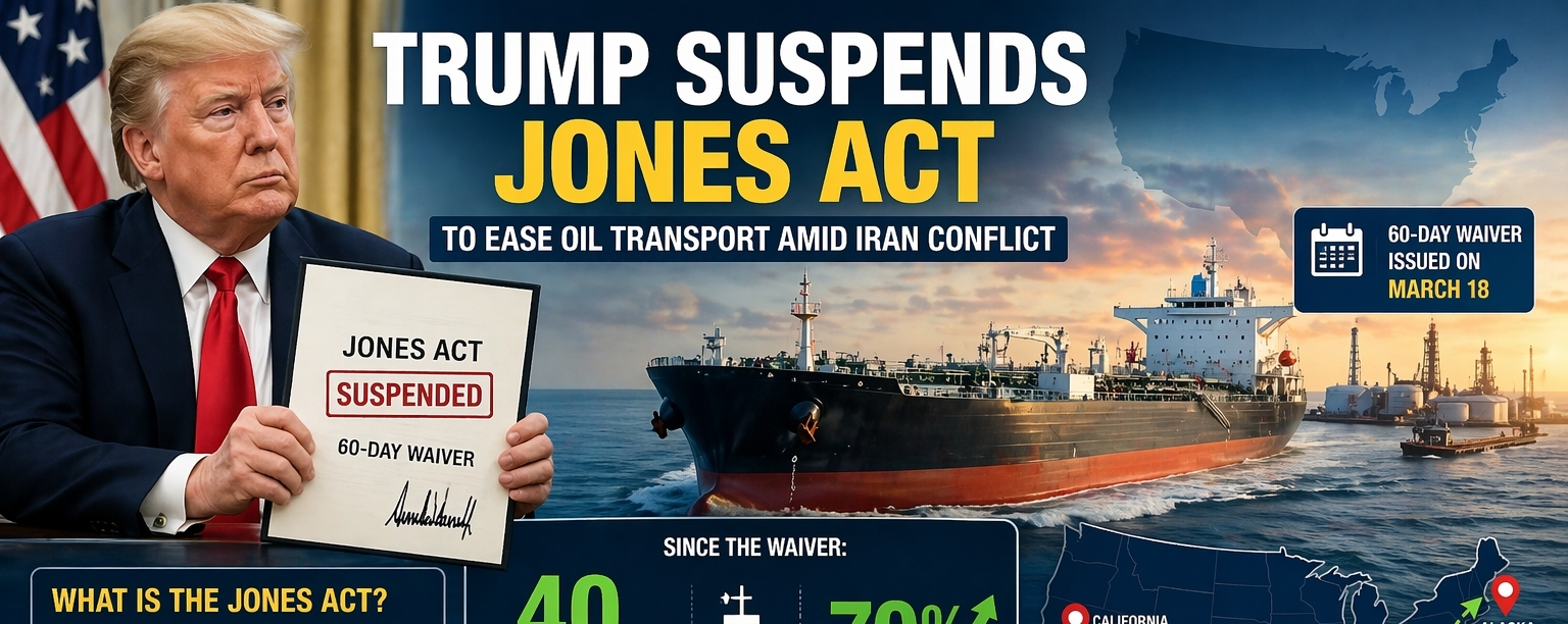 美国总统特朗普在伊朗冲突期间暂停了备受争议的《琼斯法案》,以促进美国国内石油运输更加顺畅。