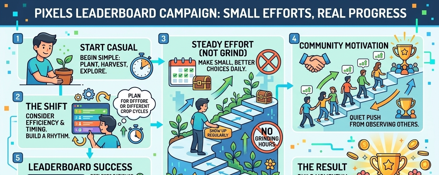 In my opinion, the @Pixels Leaderboard Campaign sends a very meaningful message: small efforts can lead to real progress. I feel this idea is powerful because it shows that success does not always come from huge actions; instead, it often grows from simple, repeated steps over time.