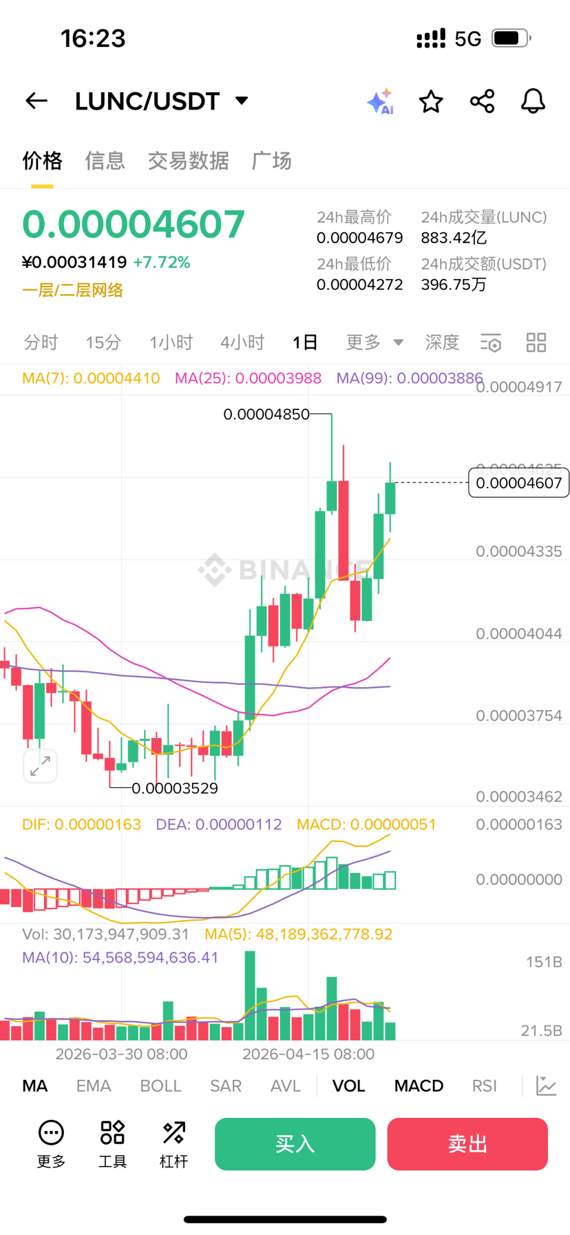 · 这一次,4月22日前后,LUNC再次放量上涨,社区里已经有人在喊“末日战车启动了”。