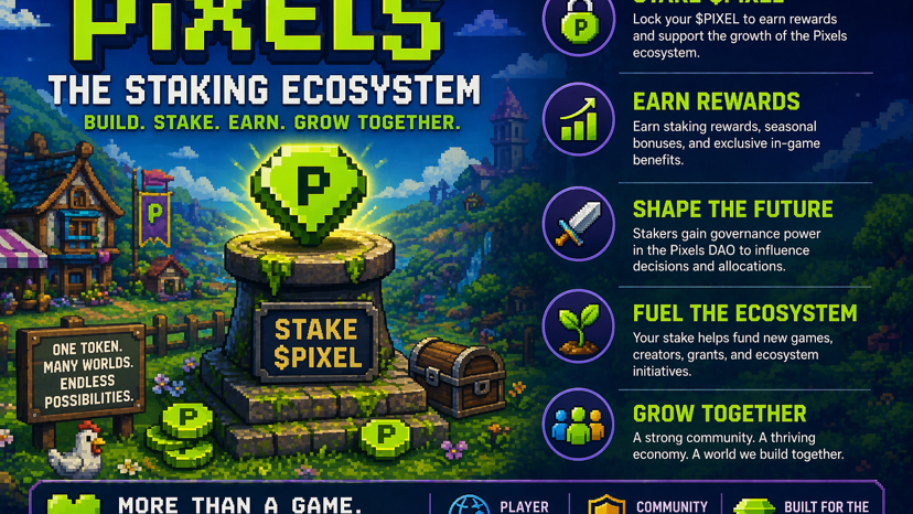 Pixels 的质押生态系统,本质是在让代币承担更高级的功能——不仅奖励玩家,更组织社区、筛选内容、沉淀资本、推动增长。