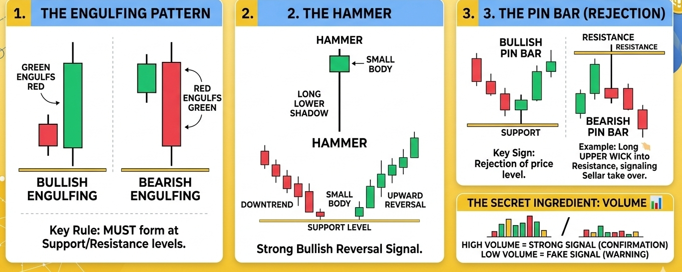 Confirmation: If an Engulfing candle is accompanied by a significant spike in HIGH VOLUME, the signal is incredibly strong.