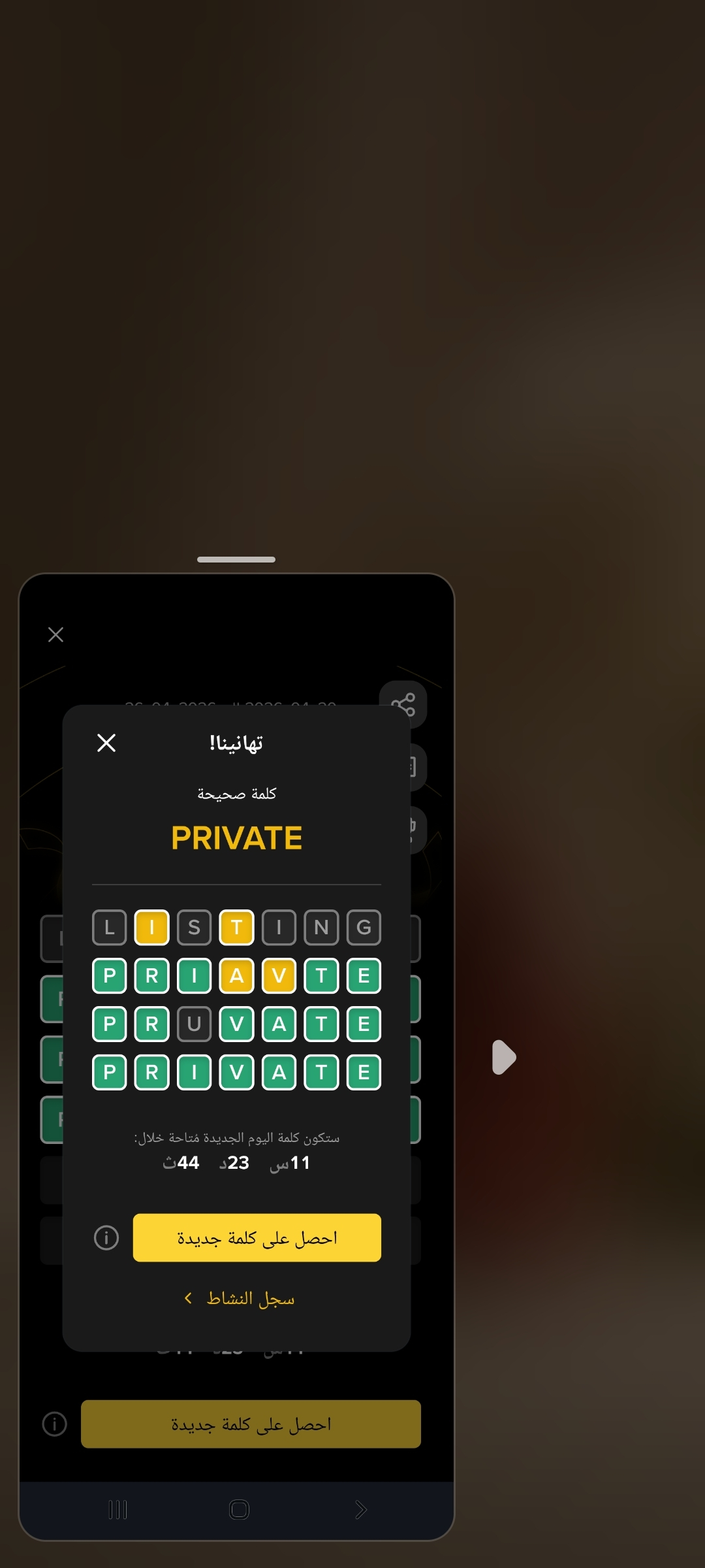 كلمة اليوم في تحدي بينانس كانت **PRIVATE**. ✨