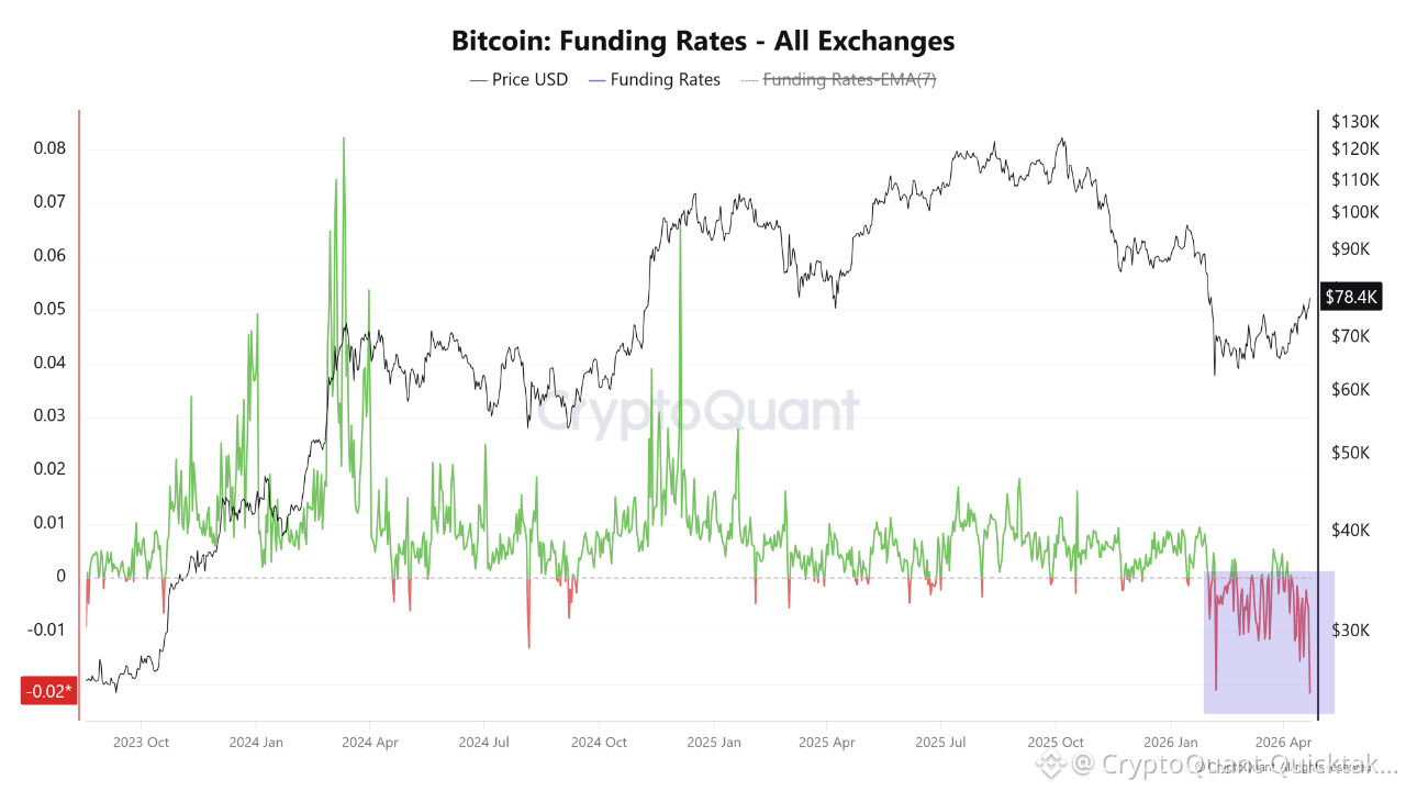 According to CryptoQuant funding rate data across exchanges, rates have been persistently negative, indicating that the crowd is leaning toward SHORT positions, with dominant sentiment being fear + disbelief.