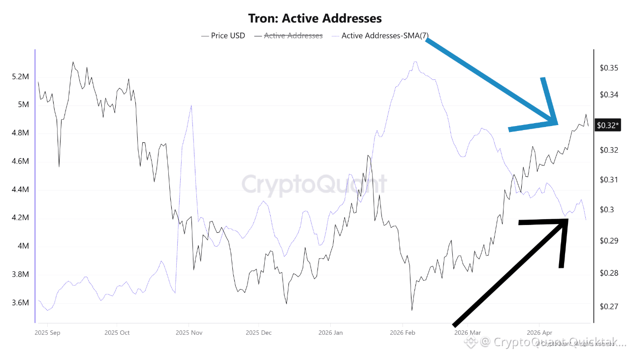 On-chain data for the TRON network (TRX) reveals a significant bearish divergence between February 7 and April 21, 2026, signaling a potential warning for investors.