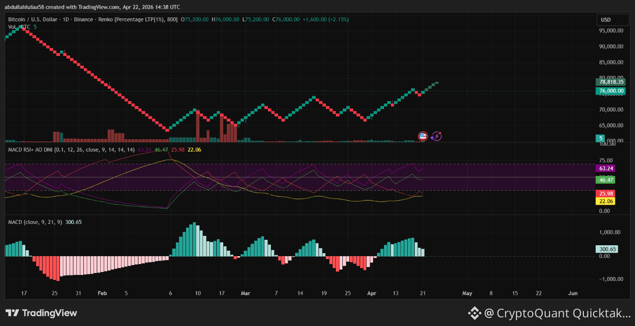 The Renko Chart has officially shifted to Green Bricks, confirming that the recent correction has been fully neutralized. By filtering out market noise, Renko provides a clear signal that the path of least resistance is now decisively upward, offering a high-probability entry for trend followers.