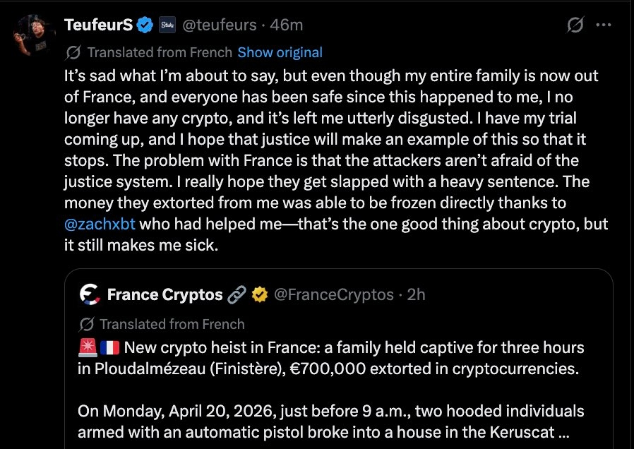 Koszmar zaczął się od przemyślanej mistyfikacji. Przestępcy podszywający się pod kurierów Amazonu oszukali 60-letniego ojca TeufeurS, zmuszając go do otwarcia drzwi w Cures we Francji. Został natychmiast porwany przez grupę w stylu komando i zmuszony do wejścia do pojazdu.