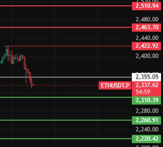 Zwróć uwagę na ETH dzisiaj na poziomie 2355, tylko jeśli 4-godzinowy poziom utrzyma się powyżej tego poziomu, to siła odbicia będzie większa, a górna granica to 2422-2463-2510, gdzie czekamy na shorty!