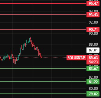 Jeśli dzisiaj na poziomie 4-godzinowym nie przebijemy 87, to oznacza, że 4-godzinny poziom nadal będzie szedł w korektę, a następnie zjeżdżamy w okolice 83-81-79 czekając na longi!#solana