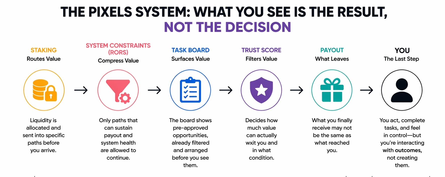 With Pixels, every path has to justify itself. Every outcome must prove it can sustain value. This is where filtering starts. What you see on the board has already passed through an unseen process—one that determines what can exist and what cannot.