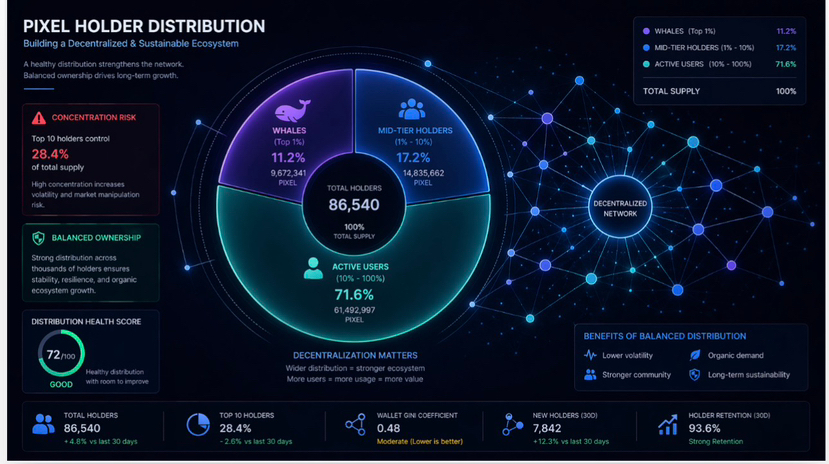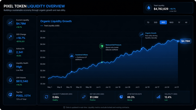 Liquidity, for example, is often misunderstood. A token can technically exist on-chain, but if liquidity is thin or fragmented, it becomes fragile. In the case of PIXEL, available liquidity data has shown relatively low depth and limited pool activity, which naturally increases volatility and sensitivity to large holders (Velithon). That’s where spend-only mechanics become relevant. Instead of constantly feeding sell pressure into shallow liquidity pools, value is redirected into usage.