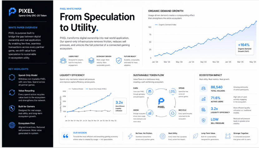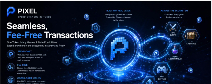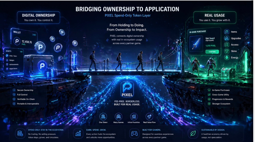 The idea of a spend-only ERC-20 layer like PIXEL isn’t just a token design tweak, it’s an attempt to fix something deeper that most Web3 ecosystems still haven’t solved properly. There’s a clear gap between owning a digital identity and actually using that identity in meaningful, repeat transactions. Wallets are full, profiles exist, NFTs sit there but real economic activity often stops at speculation.