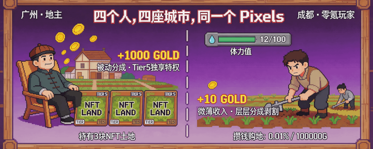 这个选择意味着什么?意味着在 Pixels 里,你的收入有一个由设计者决定的天花板,而不是由市场决定的。一个每天玩 16 小时的玩家,和每天玩 4 小时的玩家,最终的收入差距远小于时间投入的差距。