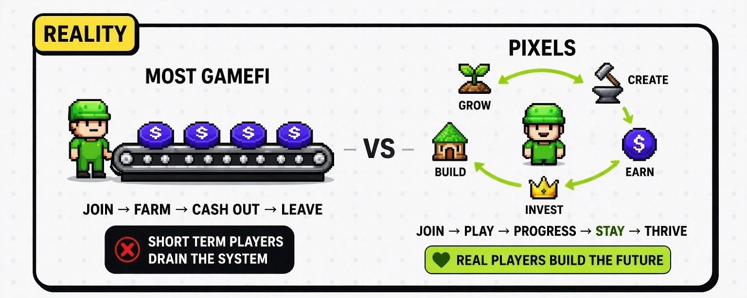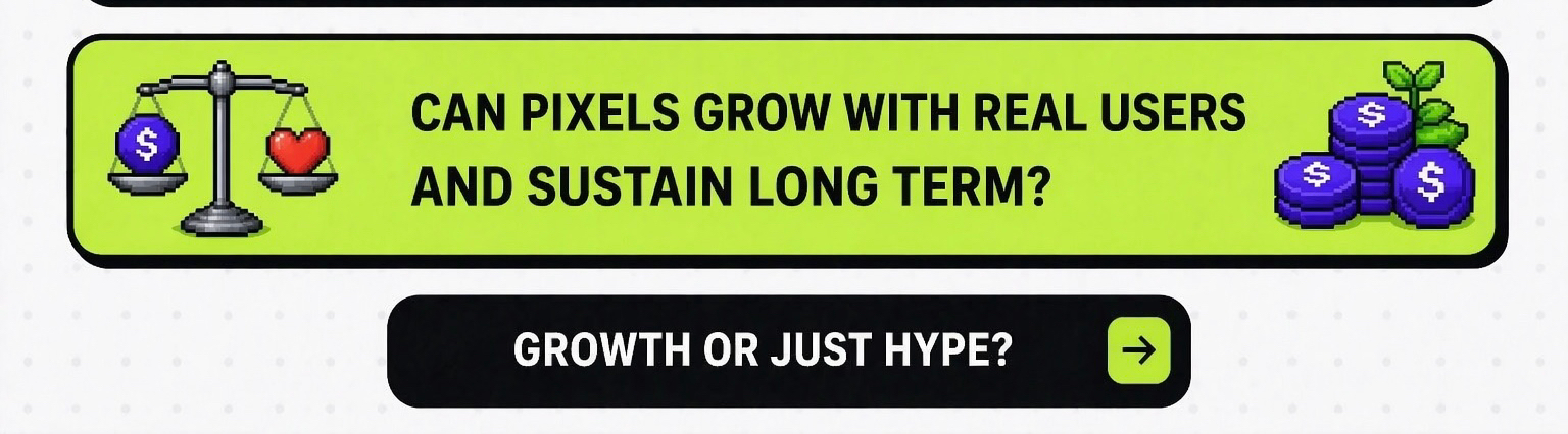 Вчора знову зависла над думкою про розвиток @Pixels і, чесно, чим довше на це дивишся, тим більше розумієш — справа тут не тільки в оновленнях чи красивих метриках. Це, по суті, про те, чи здатен проєкт реально затягувати нових VeriFi людей, а не просто показувати ріст на папері. І от саме тут починається найцікавіше. Бо якщо прибрати весь шум навколо GameFi, більшість “зростання”часто тримається на цифрах, які гарно виглядають у тредах, але слабо тримаються в реальності. Нові гаманці не завжди нові гравці. Новий трафік не завжди нова спільнота. І тут різниця величезна.У @Pixels ніби є ставка на масштабування — нові механіки, нові фічі, нові користувачі, новий потік уваги. Але головне питання, яке мене реально тригерить: це органічний ріст чи просто постійна потреба підливати нових “заробітчан” у систему? Бо поки одні заходять, інші тихо хапають халяву і зливають в стакан. І в якийсь момент стає очевидно — не кожен ріст є розвитком, іноді це всього навсього пустий непотріб з цифрами, який нікому не вперся, який вже давно перемололи і виплюнули, замаскований під успішну розвиваючу екосистему.Проблема багатьох GameFi-проєктів у тому, що вони чудово вміють залучати… але погано втримують. Прийти легко. Залишитись — інша історія. А без утримання будь-який “успіх” дуже швидко виглядає як ротація дверей. Зайшли. Покрутилися. Вийшли. Pixels поки намагається будувати іншу лінію. Не просто збирати аудиторію, а перетворювати її на екосистему. Але давай чесно: цього недостатньо, якщо нові користувачі приходять лише на хайп, а не в сам продукт. Бо хайп приводить халявщиків. Продукт приводить фундаментальних gamers.І ось тут ключове. Розвиток #pixel міряється не кількістю нових акаунтів, а тим, скільки людей реально залишаються. Бо саме користувачі тримають економіку, попит і життя всередині гри. Все інше — косметика для метрик. І, мабуть, саме від цього зараз залежить майбутнє Pixels ($PIXEL ).Бо це не про “скільки нових зайшло”. Це про те, скільки захотіли не піти.