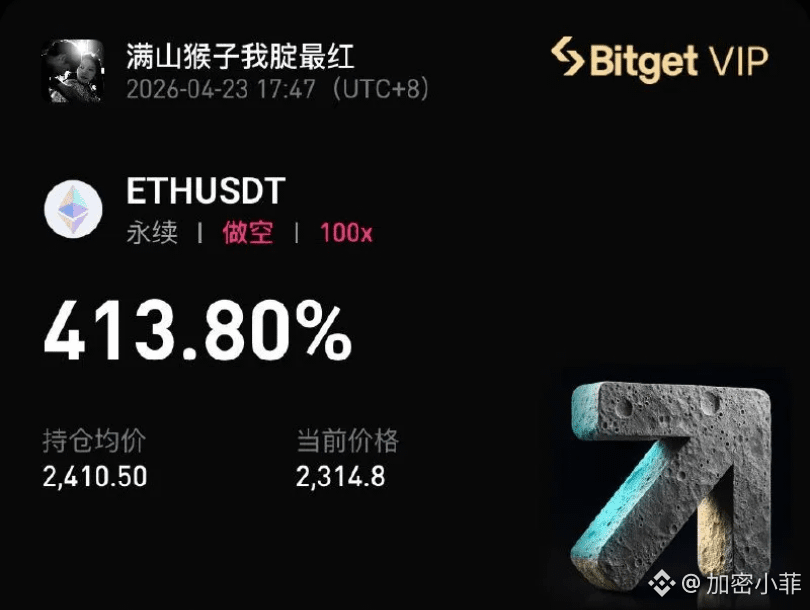 分析师 大镖客 的这笔单子简直是教科书级别的狙击。在 ETH 价格波动剧烈的情况下,精准卡位 2,410.50 入场做空。没有拖泥带水的犹豫,只有利润喷发后的快感——目前单笔利润已超 413%!