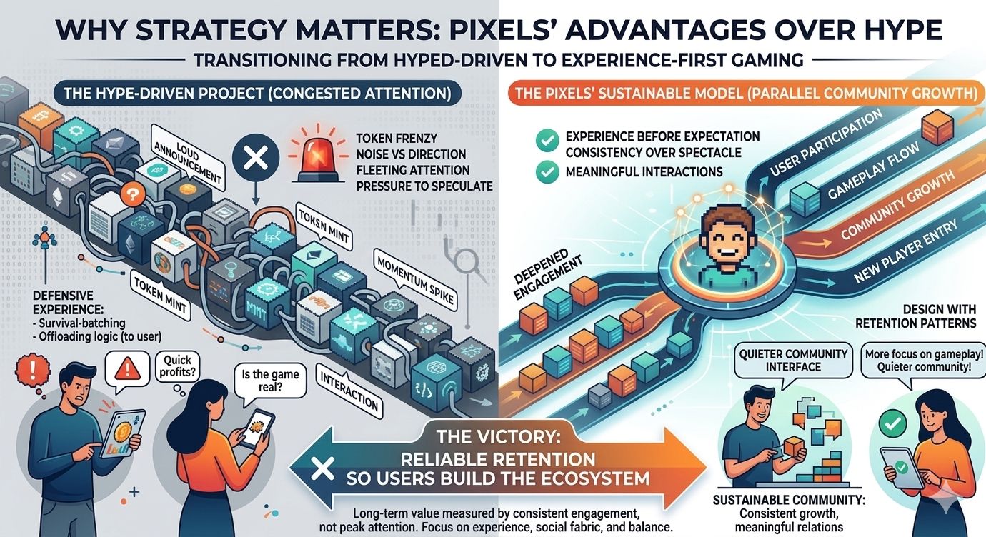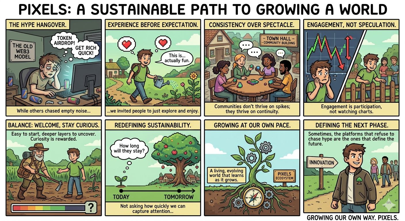 Pixels’ story isn’t about chasing headlines it’s about redefining sustainability in Web3 gaming. Instead of asking how quickly attention can be captured, Pixels asks how long users choose to stay. That distinction may seem smallbut it changes everything about adoption and long term success.