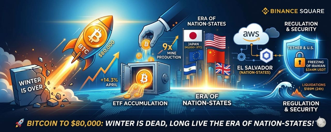 BTC's Meteoric Rise: With a 14.3% gain in April, Bitcoin is on track for its best monthly performance since late 2024. It is currently trading just below the critical $80,000 resistance level.