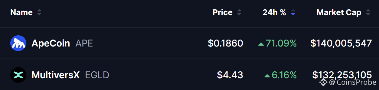 The crypto market has seen a burst of momentum over the past 24 hours, led by Apecoin’s explosive 71% rally. While many traders may feel they missed that move, another gaming-focused token — MultiversX (EGLD) — is quietly showing signs of a similar bullish setup.