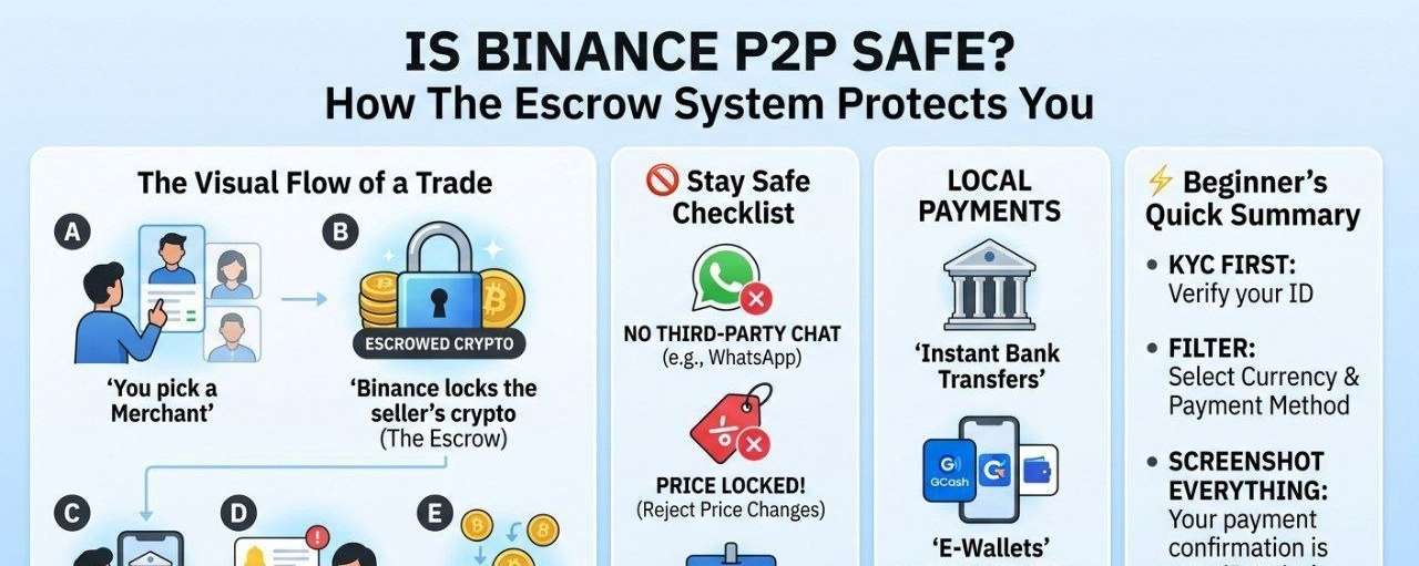In a traditional exchange, you buy from the "house." In P2P, you buy from a person, and Binance acts as the Marketplace & Referee.