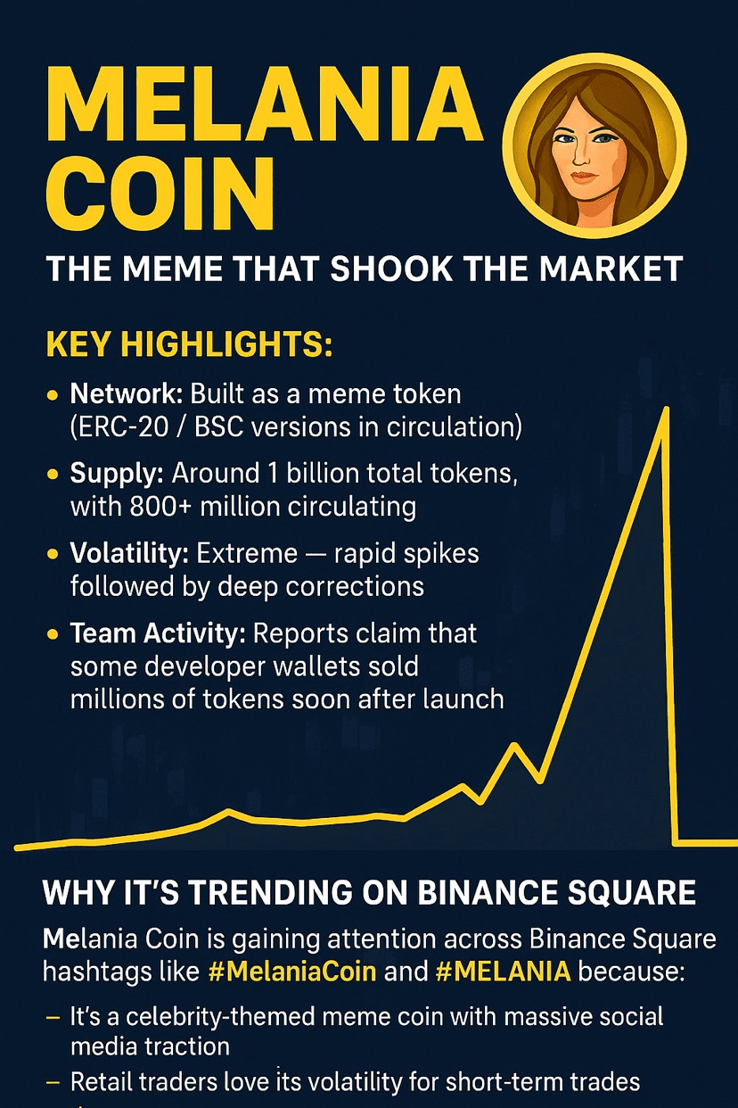 Melania Coin zyskuje uwagę na hashtagach Binance Square, takich jak #MELANIACoin i #MELANIA ponieważ: