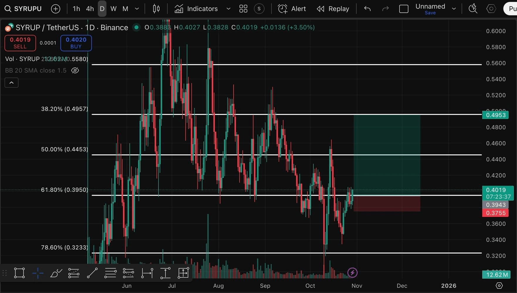 Po okresie konsolidacji w pobliżu wsparcia, $SYRUP przełamało się z przekonaniem, tworząc wyższe dołki na czterogodzinnej świecy. Aktywo obecnie handluje powyżej kluczowych średnich kroczących, potwierdzając krótkoterminową byczą strukturę. Przełamanie powyżej psychologicznego oporu na poziomie $0.40 dodatkowo potwierdza wzór kontynuacji, a traderzy zwracają uwagę na kolejne poziomy oporu na $0.4140 i $0.4250.