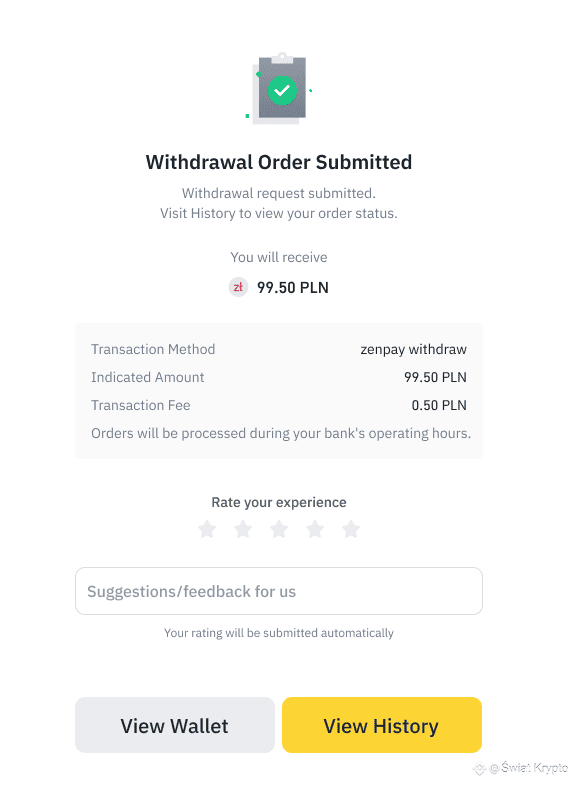 Twoje zlecenie wypłaty zostało przesłane! Kliknij [Zobacz Historię], aby sprawdzić status wypłaty w sekcji [Historia Fiat].
