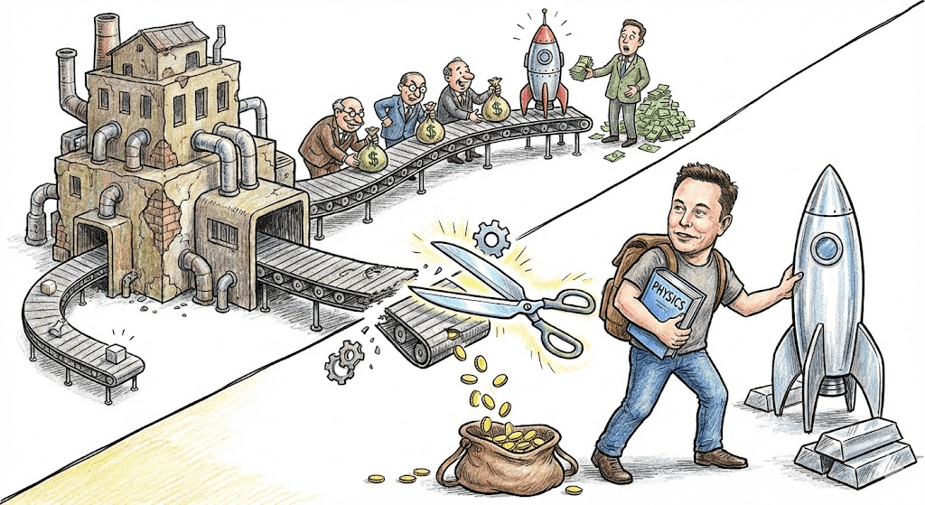 就像当年的航天业,火箭卖几亿美金,原材料才占2%?这不就是欺负甲方不懂行吗?马斯克一看,乐了,直接从物理课本翻起,把那些吸血的中间环节全砍了,成本砍掉90%。这就是典型的智商税收割机。