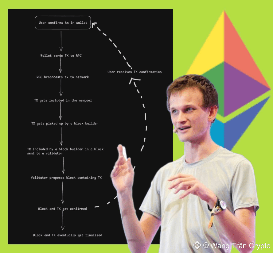 Trên $ETH thì không có ai đứng giữa - mỗi giao dịch phải tự tìm đường để được xử lý bởi mạng lưới. Dưới đây là hành trình của một giao dịch từ lúc bạn nhấn “Submit” đến khi nó được ghi lên blockchain: