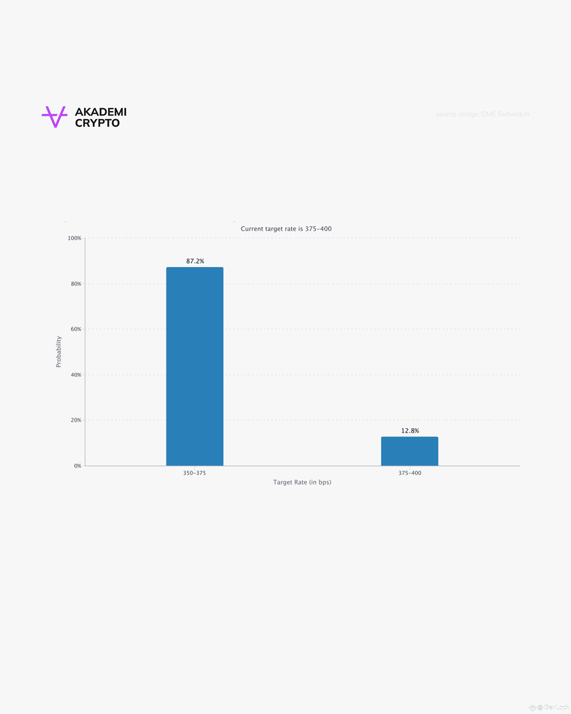 Analitycy rynkowi są coraz bardziej pewni, że przewodniczący Rezerwy Federalnej Jerome Powell ogłosi kolejną obniżkę stopy procentowej w ten czwartek. Na podstawie danych z narzędzia CME FedWatch, oczekiwania wskazują na obniżkę do 3.50%–3.75%, co sygnalizuje kolejną obniżkę o 25 punktów bazowych.