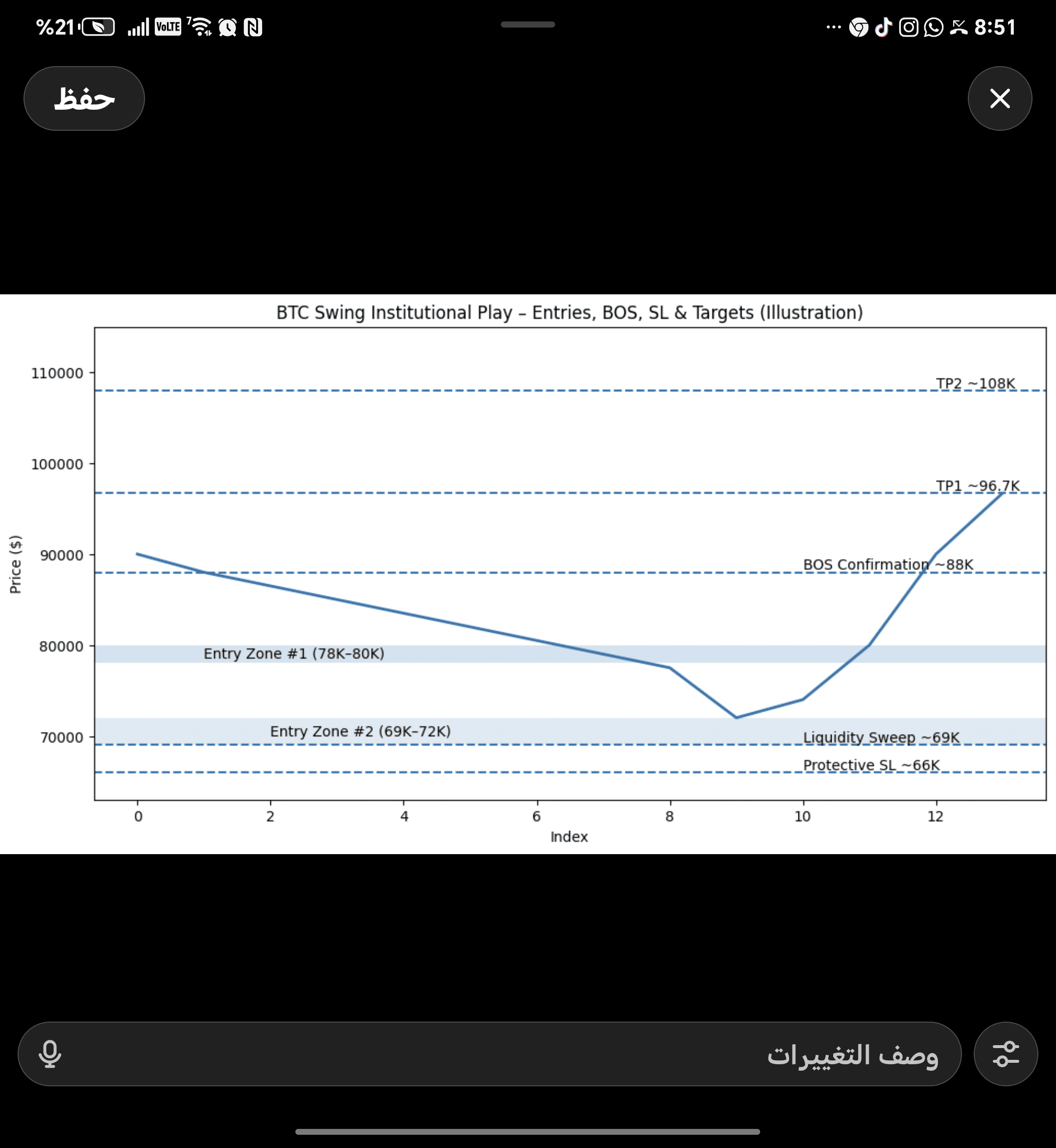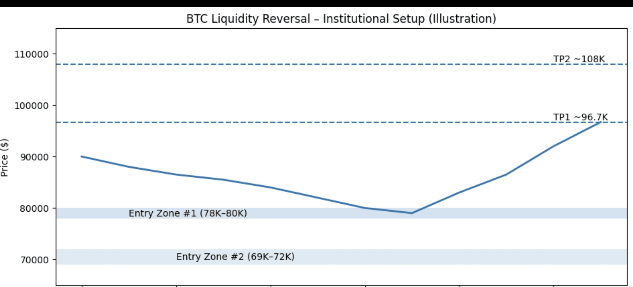 Na szczycie wykresu znajduje się silny blok podaży 110K, z którego nastąpił spadek — baza instytucjonalna.