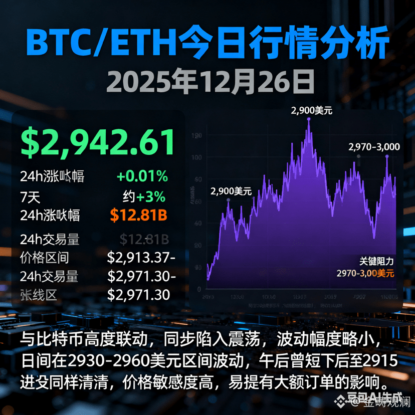 今日BTC/ETH市场呈现典型的"圣诞后静默期"特征:交投清淡,价格窄幅震荡,多空力量暂时平衡。比特币围绕87,800美元波动,以太坊围绕2,940美元震荡,两者均在关键技术区间内徘徊,等待方向性突破。建议投资者耐心等待交易量恢复和明确突破信号,再择机入场。比例 1:1。
