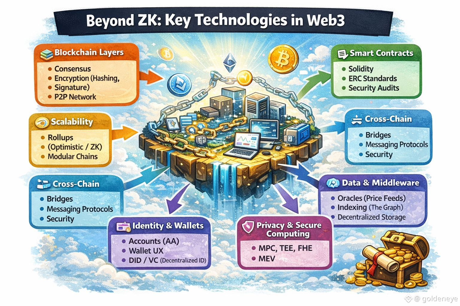 除了 ZK,Web3 里常见的“技术栈”大概可以按下面这些 $USD1 $BNB $BTC