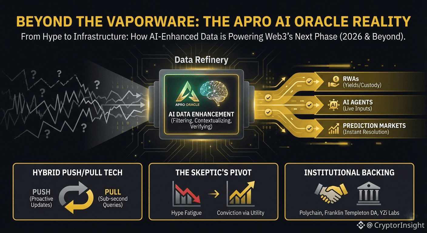 End of 2025. Everyone’s dropping their “year in review” threads, predicting 2026 moonshots, and honestly? A lot of it feels like the same recycled narratives. “AI will change everything!” “RWAs are the future!” “This oracle will 100x!” I’ve been guilty of rolling my eyes more than once this cycle. Especially when it comes to AI slapped onto blockchain projects. We’ve seen the pattern: Big promises about “intelligent” whatever, flashy roadmaps, then… crickets or incremental upgrades at best. Oracles in particular – the space is packed. Chainlink dominates, Pyth owns speed, a dozen others fight for scraps. So when I kept seeing $AT and APRO Oracle pop up in my feed, my first reaction was skeptical. “Another AI oracle? Really? We’re doing this now?”