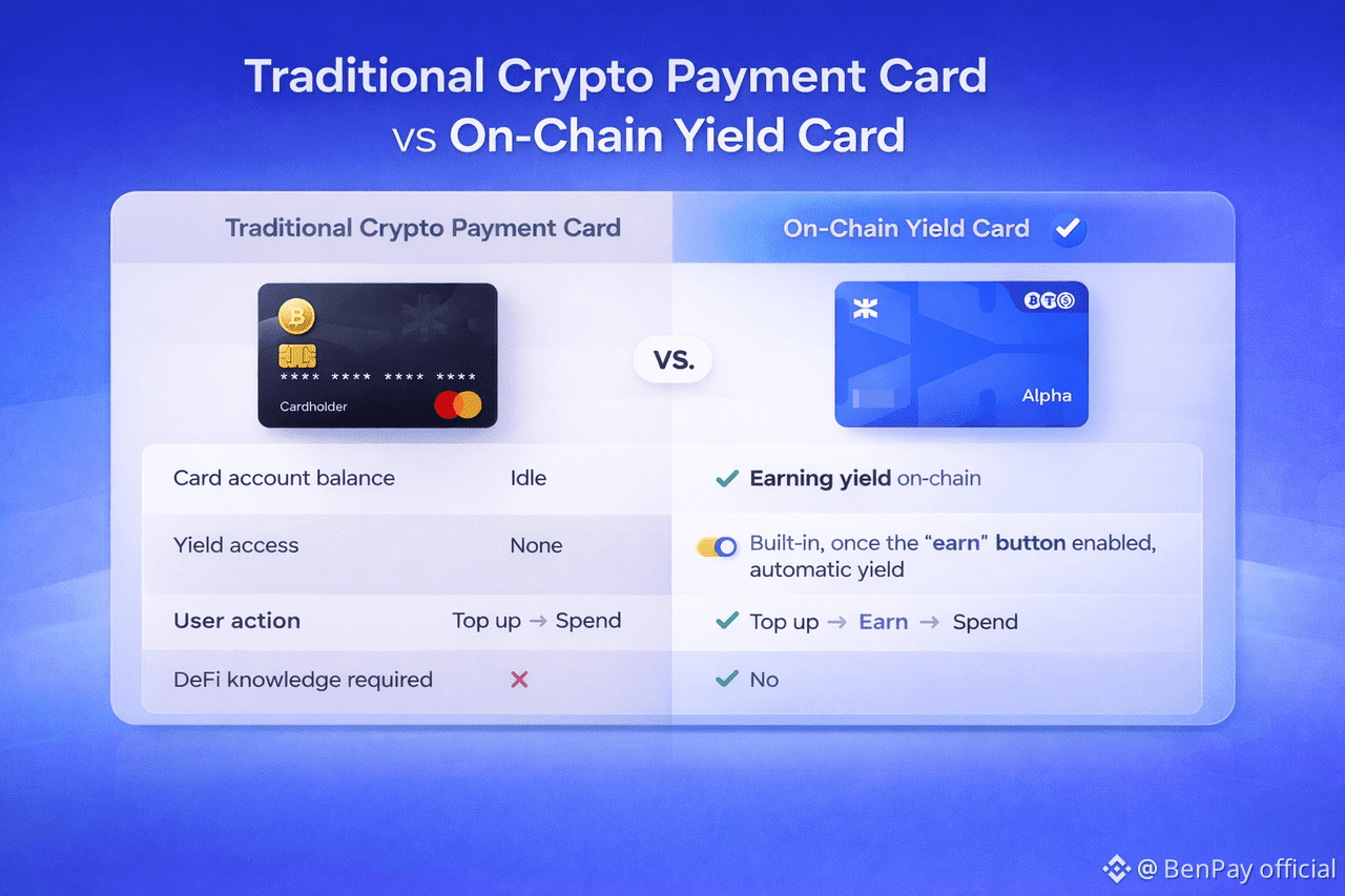 To illustrate how an on-chain yield card works in practice, consider the BenPay On-Chain Yield Card (mentioned purely as an example).