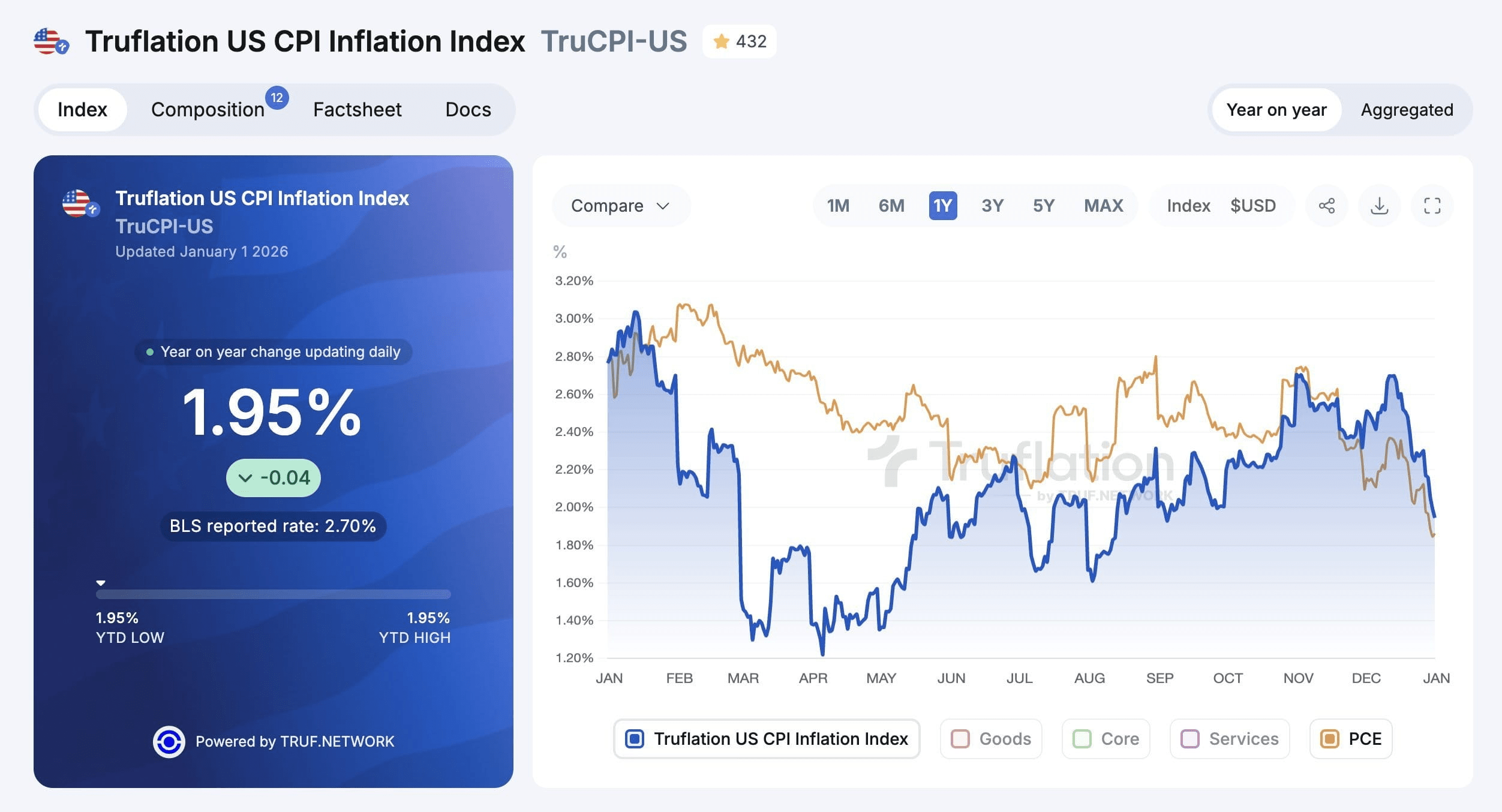 Zgodnie z najnowszymi danymi Truflation, CPI w USA spadło poniżej 1,95%. To duża zmiana. Spadająca inflacja łagodzi presję na warunki finansowe i historycznie tworzy taki rodzaj środowiska, w którym kryptowaluty się rozwijają. Płynność oddycha, apetyt na ryzyko wraca, a kapitał zaczyna polować na wzrost.