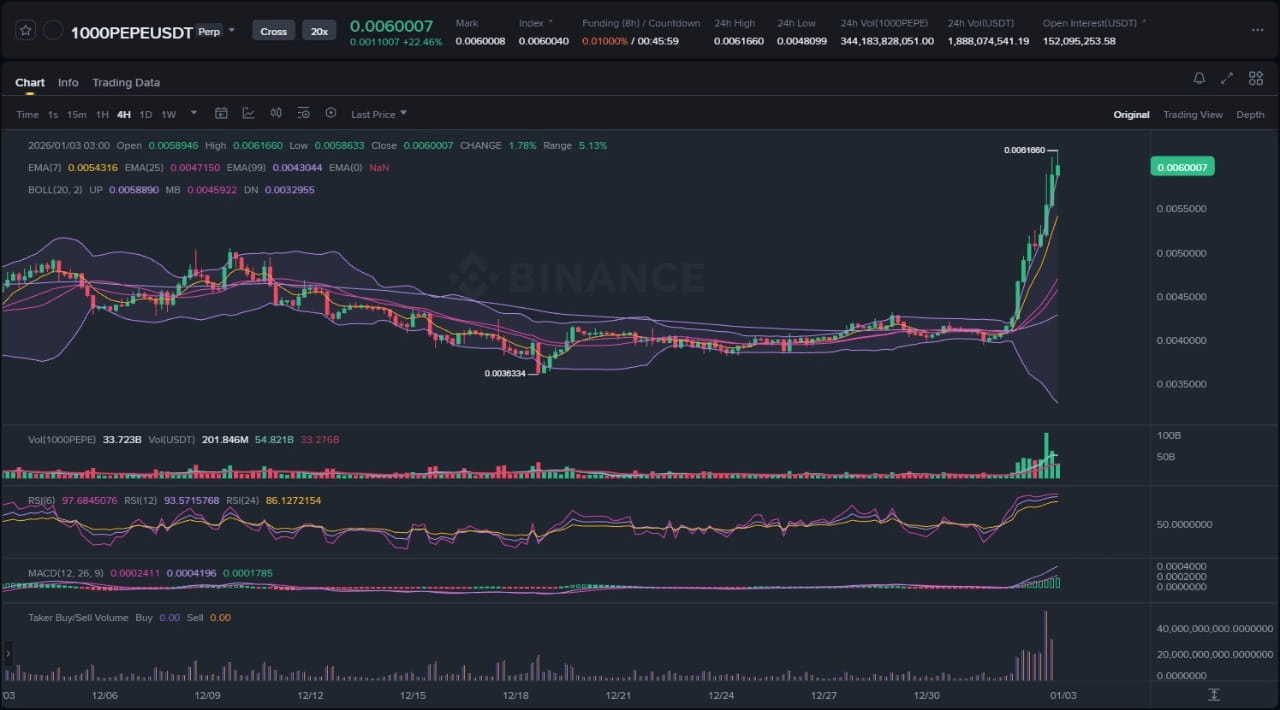Sektor monet meme doświadcza dużej ekspansji zmienności, a 1000PEPE Perpetual jest teraz w centrum uwagi. Po tygodniach ciasnej konsolidacji i stłumionych ruchów cenowych, rynek gwałtownie przesunął się z akumulacji do impulsu, wchodząc w paraboliczną fazę odkrywania cen napędzaną wyłącznie mechaniką płynności i momentum — nie emocjami.