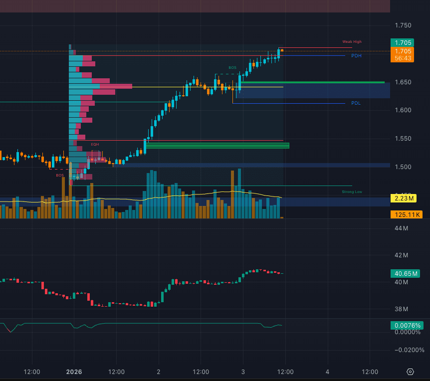 Price holds above 1.62 – 1.65 (POC/HVN)