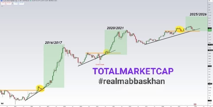 🔥Całkowita kapitalizacja na 3-letniej linii trendu (Altcoiny gotowe na rajd w 2026 roku)🚨🚨 Cykl rynkowy kryptowalut jest trudny do zignorowania. Główne hossy prawie zawsze zaczynają się po długich okresach bazowania i stabilnych wzrostów.