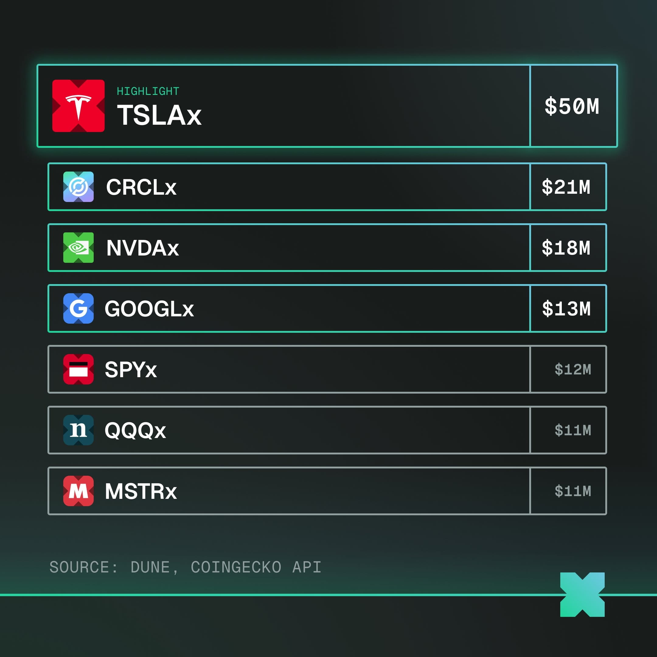 Pod względem ekosystemu xStock jest znacznie bliższy zasadom handlu związanym z kryptowalutami: opiera się na płynności oferowanej przez wiele CEX-ów, aktywnie wchodzi na łańcuchy publiczne i w środowiska DEX, podkreślając niskie progi wejścia i ciągłą dostępność 7×24.